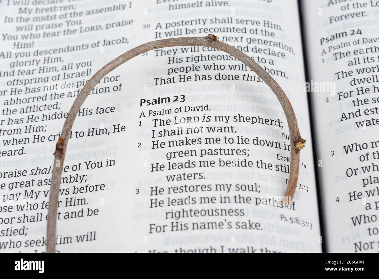 Die Bibel Wurde In Psalm 23 Mit Einem Kleinen Stab Eroffnet Verse 1 Bis 5 Nahaufnahme Horizontale Aufnahme Stockfotografie Alamy